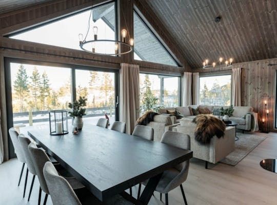 Kveldsro er en hyggelig og moderne fjeldhytte med god plads og en varm atmosfære – perfekt til familier og vennegrupper, der ønsker at nyde fjeldets ro og naturoplevelser året rundt. Hytten er indrettet i en gennemtænkt skandinavisk stil med lyse farver, stilrene detaljer og store vinduer, der lukker naturen ind og skaber en lys og luftig stemning i rummene.